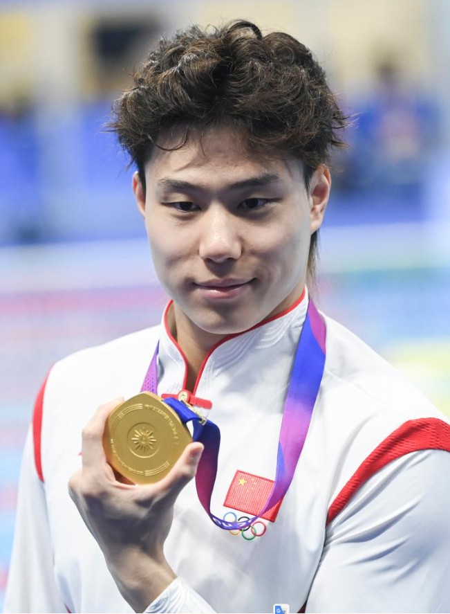 ▲覃海洋在男子50米蛙泳决赛中夺得金牌。新华社