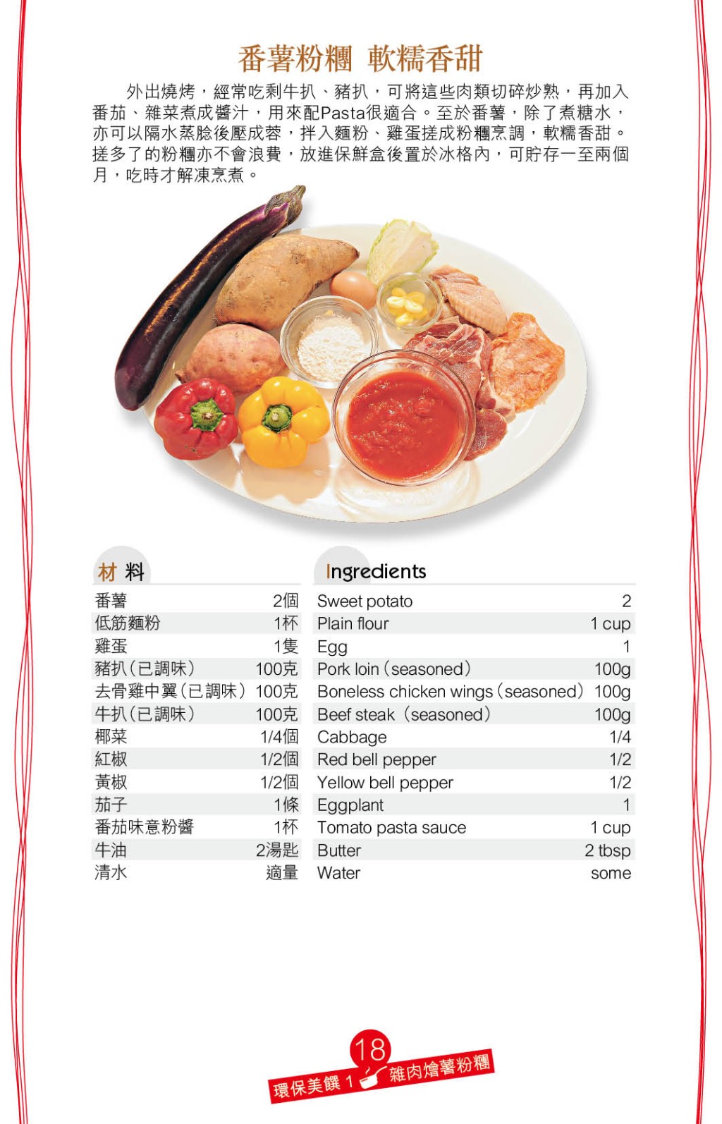 软糯有嚼劲的粉团,其实自家制作亦简单。今日推介的杂肉烩薯粉团,材料十分丰富又惹味。先将已调味的猪扒、去骨鸡中翼、牛扒切小块,椰菜、茄子、红及黄灯笼椒切小块,备用。接着自制薯粉团,将番薯去皮、切块及压成蓉,加低筋面粉、鸡蛋及清水拌成面团,先搓成长条再切粒,煲滚水将面团粒煮至浮面。起油锅炒熟肉类,加入蔬菜粒炒匀,下意粉酱煮滚,加入煮熟的薯粉团略煮,最后加入牛油增加香味。这道杂肉烩薯粉团包括蔬菜、肉类和淀粉主食,味道酸香醒胃,是营养丰富的简餐。