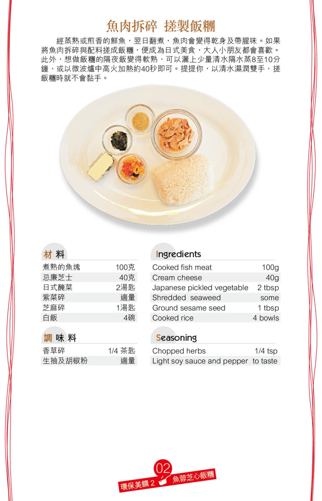 自制饭团的口味多变,又省时方便。炮制鱼蓉芝心饭团,可用新鲜煮的白饭,或将隔夜饭加水蒸软。配料方面,将熟鱼肉碎与忌廉芝士粒拌匀,分开两份。一半鱼肉芝士与白饭拌匀,一伴作饭团的馅料,包裹饭团时加入日式腌菜作提味。想香口一点,可在饭团涂上酱油及煎香。
