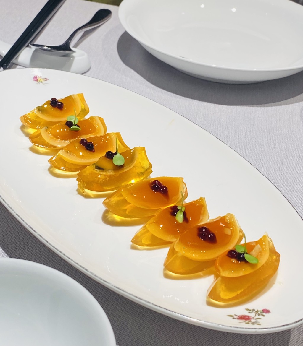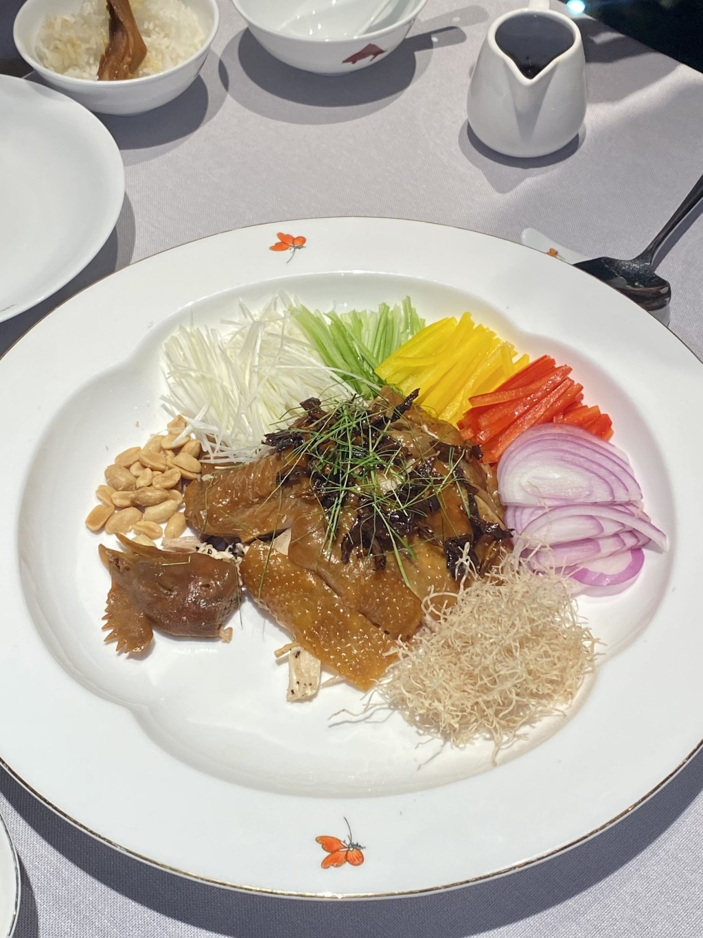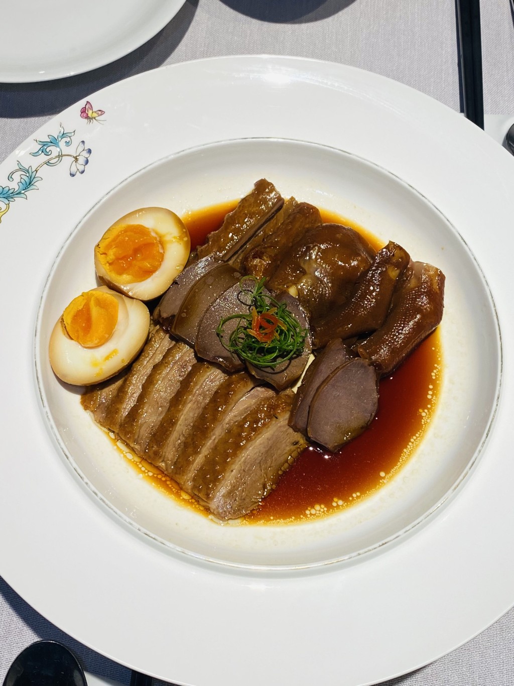 位于深圳湾万象城的至正潮菜,是一家来自广州的集团式餐厅,以食材为先的潮汕菜闻名。店铺沿走精致商务路线,且环境装潢典雅,顾客群更不乏明星艺人。是夜4人晚餐(人均消费300元人民币),前菜溏心皮蛋(68元人民币),沿用晶莹剔透的黄金皮蛋入馔,黄金皮蛋自身味道淡雅,蛋黄软糯溏心,而蛋清口感弹嫩,整体绵密清爽,香而不腻,配合醋汁凉伴,微酸醒胃。至于潮式卤水拼盘(198元人民币),鹅片肉质软润中带弹性,鹅味香浓,油香丰富,卤汁味道香料富层次;豆腐入口嫩滑且豆香氲氤,滋味满泻。接下来的菌皇捞起豉油鸡(188元人民币/半只)恰如捞起手撕豉油鸡,鸡丝皮爽肉嫩,且附豉油甘鲜甜香的同时,散发菇菌香气。服务员边捞起还边说意头说话,喻意吉祥平安。