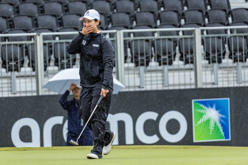 ▲由于香港改发八号风球,大会决定取消最后一轮赛事,因此昨天(7日)并列第一位的林希妤和高真荣于粉岭球埸第18洞,以突然死亡赛制决胜一战。