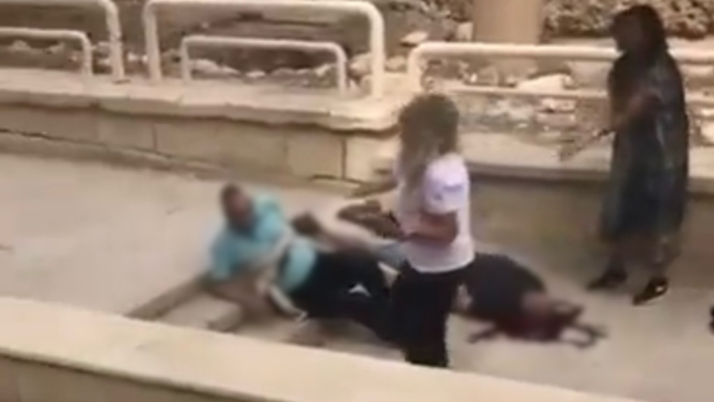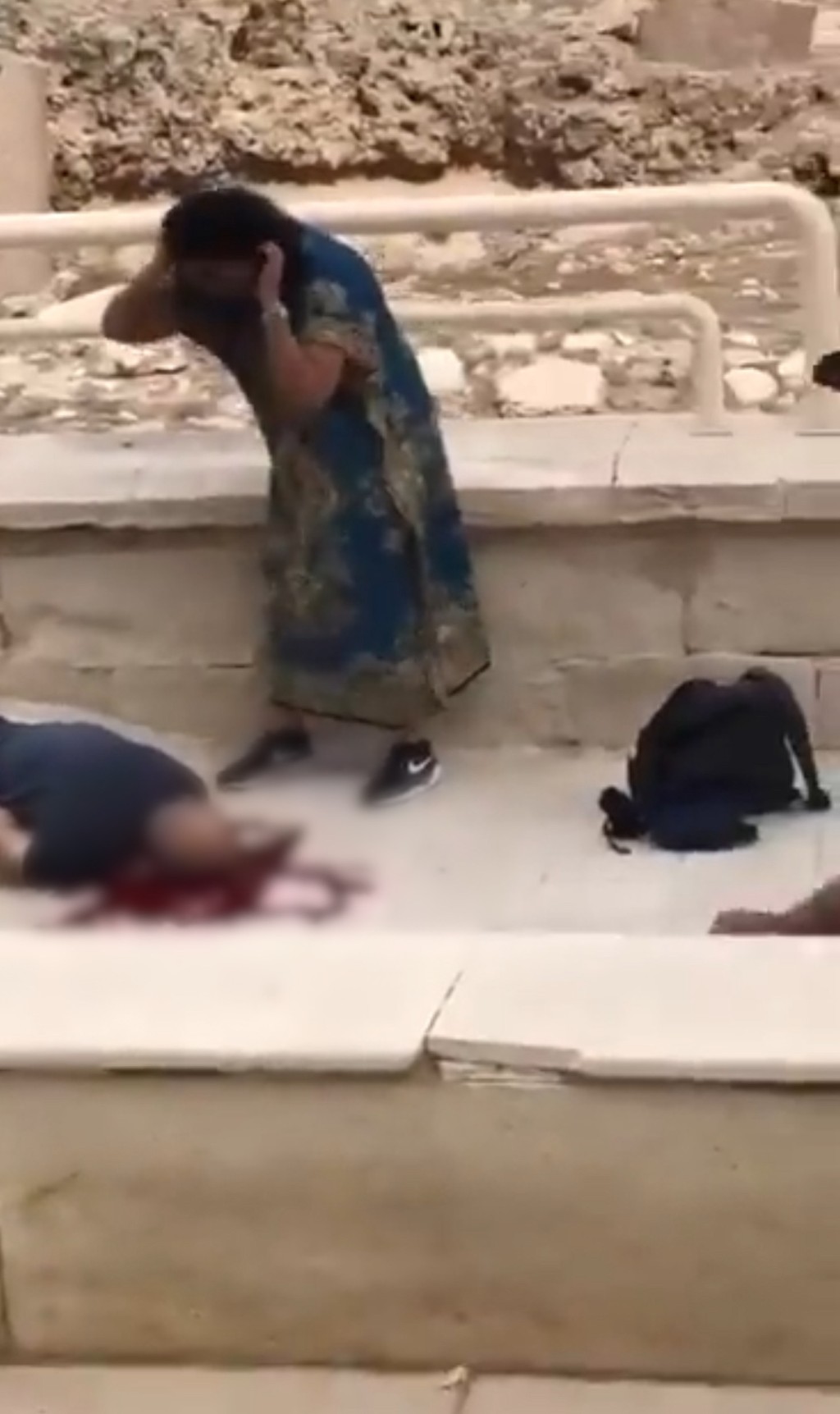 网传影片显示,旅游景点地上至少有2人一动也不动地躺在地上,其中一人头部周围有血迹,旁边一名男子挨在两级楼梯上,可能受了伤。一名妇女尖叫着叫救护车。