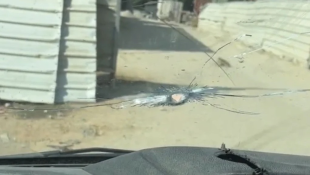 许文说,驾驶座前的挡风玻璃被多枚子弹击中,其中两枚打穿玻璃和驾驶座,车后排一名工人的腹部、腿部均被子弹击中。