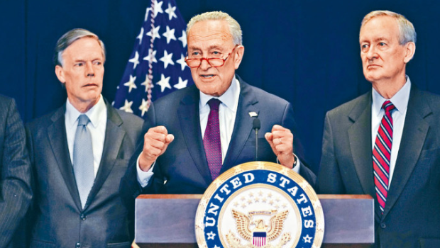 美国驻东京大使馆昨表示,美国联邦参议院多数党领袖舒默(Chuck Schumer,图中)率领的跨党派参议员代表团访问中国后,取消前往日本的行程。大使馆的新闻稿说:“由于外部事件,代表团赴日行程已经取消。”代表团原计划在访华后造访日本及韩国。一位大使馆发言人稍早告诉法新社,代表团访韩行程也已取消,但随后又有消息称,目前还不清楚舒默是否访韩。此前美国政府指出,有11名美国公民在以巴战事中罹难,还有美国公民被巴勒斯坦激进组织哈马斯挟持为人质。