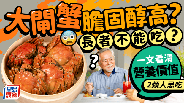 10月是大闸蟹当造的时节,不少人已急不及待吃蟹。大闸蟹胆固醇高?长者可以吃吗?有营养师表示,大闸蟹营养价值不低,适量进食甚至有助提升免疫力,但有2类人忌吃。