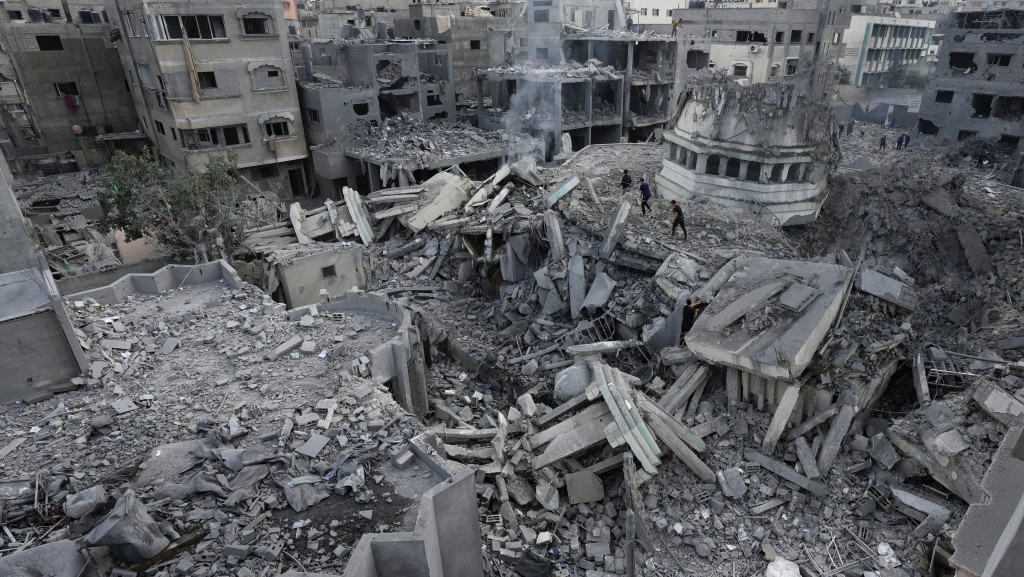 ▲加沙沙提(Shati)难民营的亚辛清真寺被空袭炸成废墟。美联社