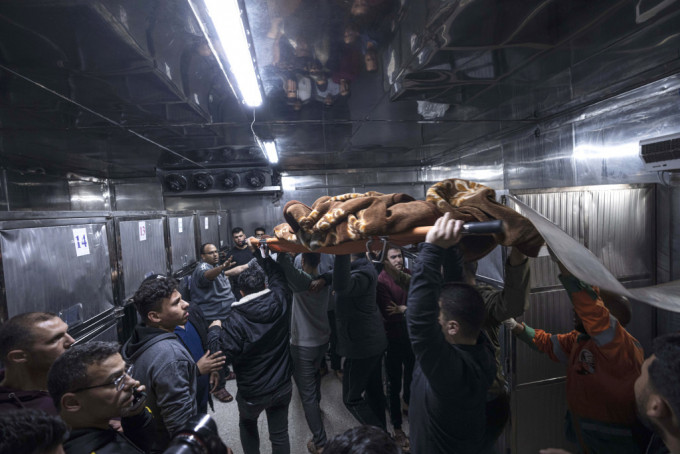 ▲因尸体太多,加沙最大医院停尸间不胜负荷。美联社