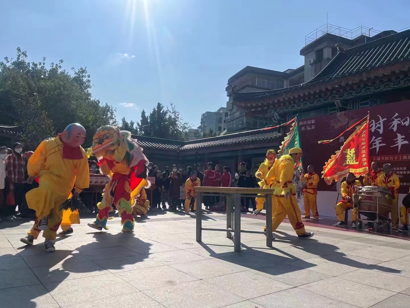 ▲斗牛狮队受邀在丰湖书院表演,年轻队员活力四射。受访者供图