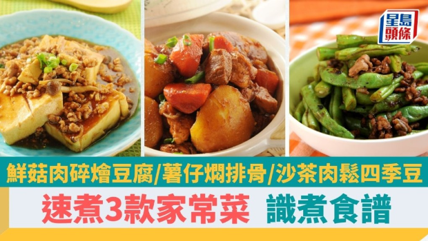 煮法简单又富营养的家常菜,最受欢迎。 今日推荐3款易煮家常菜,包括鲜菇肉碎烩豆腐、薯仔焖排骨、沙茶肉松四季豆,食材有菜有肉,营养均衡。