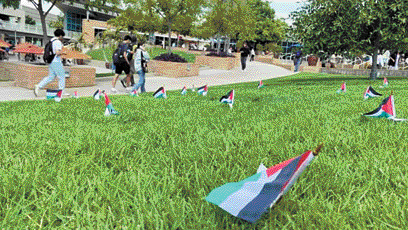 周三,河滨加大一些学生在校园草坪上发现数十面巴勒斯坦国旗,他们坦言深感不安,紧张情势正在加剧。