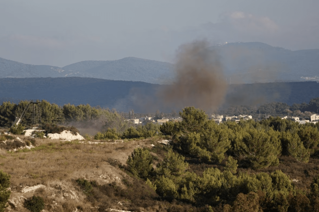 ▲2023年10月13日,从黎巴嫩南部阿尔玛沙阿布靠近以色列边境的黎巴嫩一侧看到,遭以色列炮击后冒出浓烟。路透社