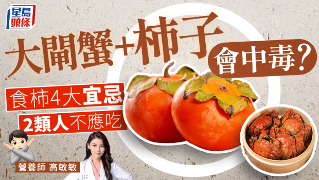 营养师高敏敏在Facebook专页讲解柿子的营养及进食宜忌,并折解蟹与柿子同食会导致食物中毒的说法。 她表示,两者同时进食有可能导致身体不适,因此不建议一起吃。