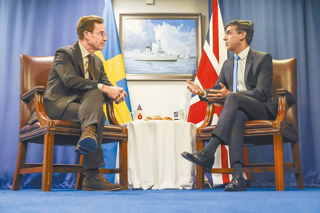 英国首相苏纳克13日与瑞典总理克里斯特森会晤,会后双方签订战略伙伴关系,并发表战略伙伴宣言。宣言提到,英瑞双方同意,欧洲大西洋与印度太平洋区域的安全繁荣彼此密不可分,将协同寻求强化欧洲与印太区域的伙伴关系,落实欧盟与英国的印太战略。双方并重申了台湾海峡及亚太地区和平稳定的重要性。
