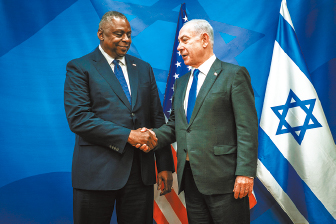▲美国国防部长奥斯汀(左)访问以色列会见以总理内塔尼亚胡,承诺在人才和军火方面,给予支援。 路透社