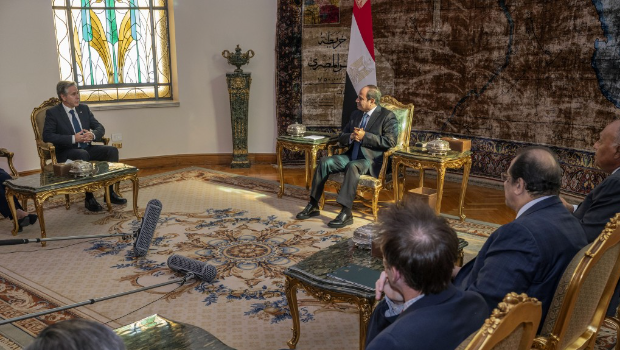 ▲布林肯会晤塞西,塞西指埃及愿意重开拉法关口。美联社