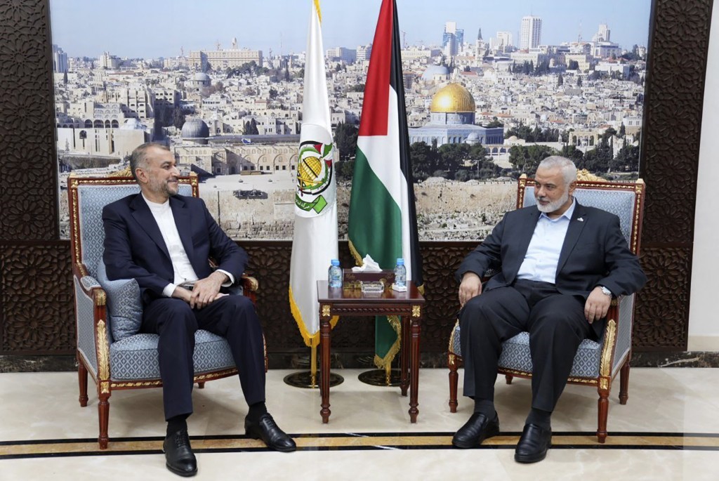 ▲阿卜杜拉希扬(左)日前会晤哈马斯其中一名领袖。美联社