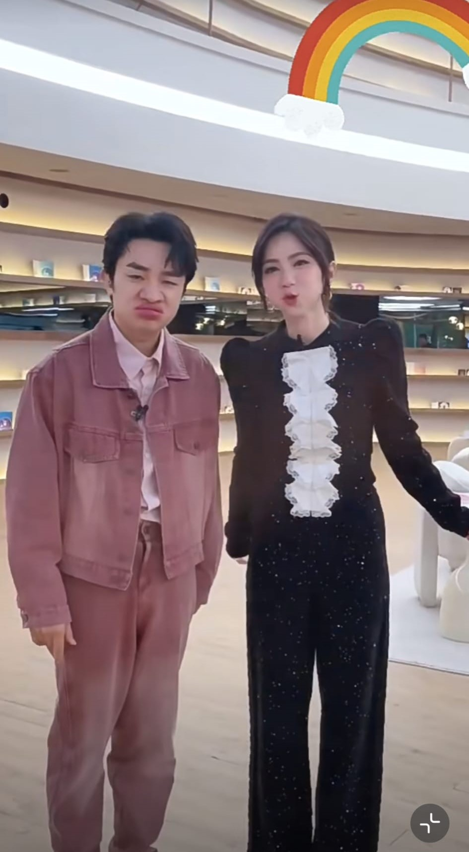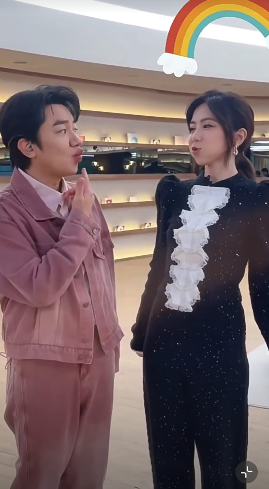 ▲王祖蓝向邓紫棋讨教金鱼嘴模仿秘诀。