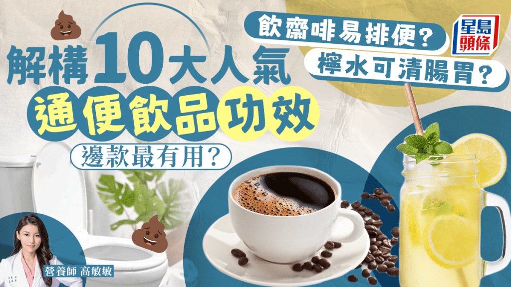 便秘吃什么,喝什么好?每天一杯黑咖啡有助排便?韩星也推介的柠水清肠胃方法真的有效?有营养师拆解网络10大人气通便饮品的功效,并教最佳饮用方法。