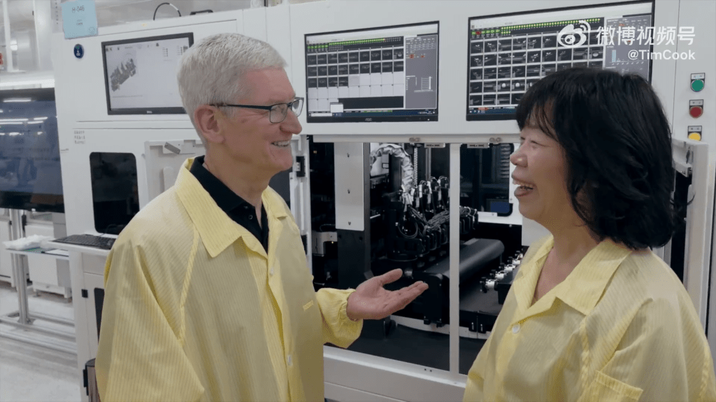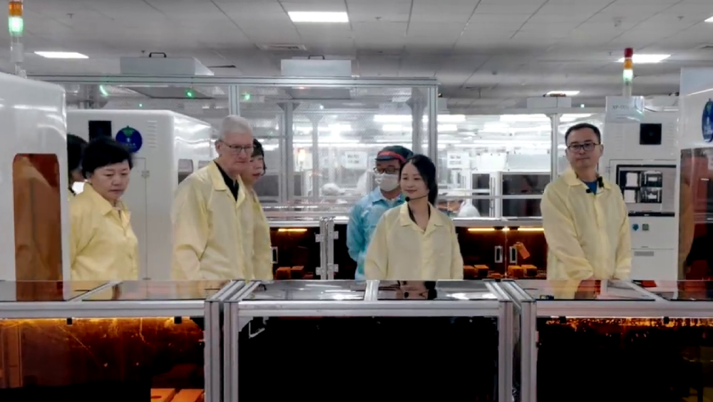 ▲苹果CEO库克到访浙江,参观Apple Watch生产线。 微博@TIMCOOK