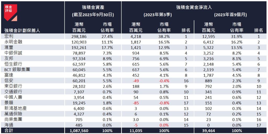 ▲2023 年第3 季及首9 个月的强积金计划保荐人资金流。