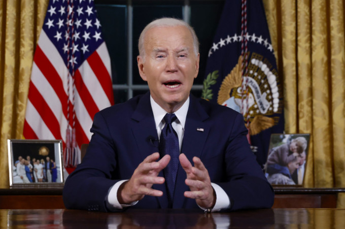 刚结束在以色列旋风式访问的美国总统拜登,周四(19日)晚在白宫椭圆形办公室向全国发表电视演说,阐述美国对乌克兰和以色列提供援助的理由,他直指巴勒斯坦武装组织哈马斯和俄罗斯都想“消灭民主邻国”。他强调:“我们正面临历史转折点,今天我们作出的决定,将塑造未来数十年。”