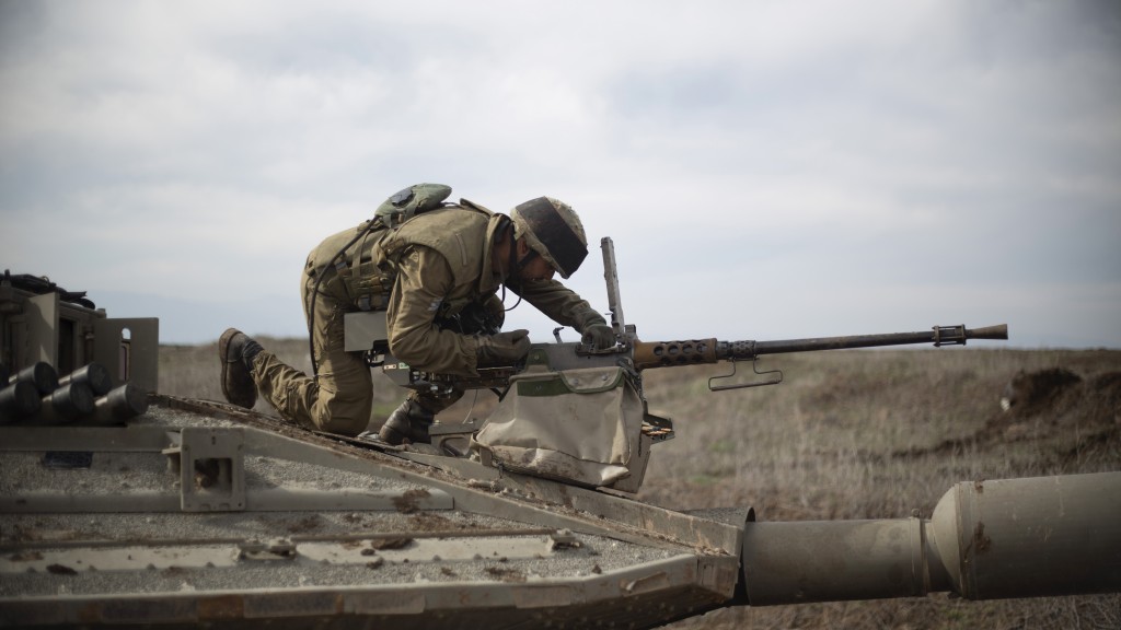 ▲以色列士兵检查梅卡瓦 Mark 4 坦克的火炮。 美联社