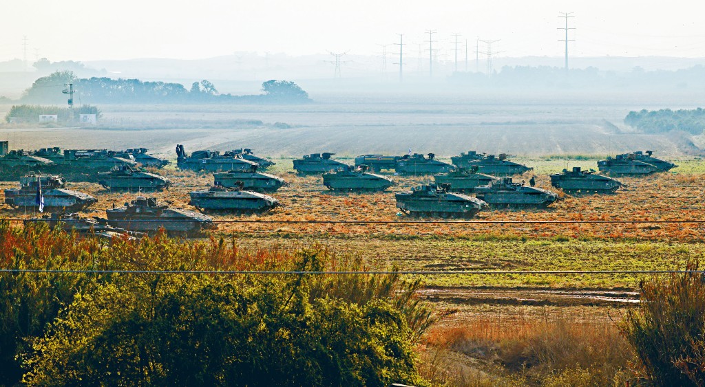 ▲大批以色列坦克和战车昨天在南部接壤加沙地带的边境集结。