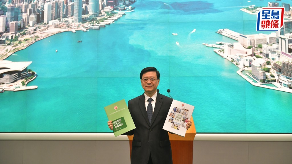 特首李家超今日(10月24日)在发表施政报告前夕,出席行政会议前见记者。他呼吁市民多支持亚残运的香港选手,并展示施政报告封面。他未有回应楼市撤辣问题。