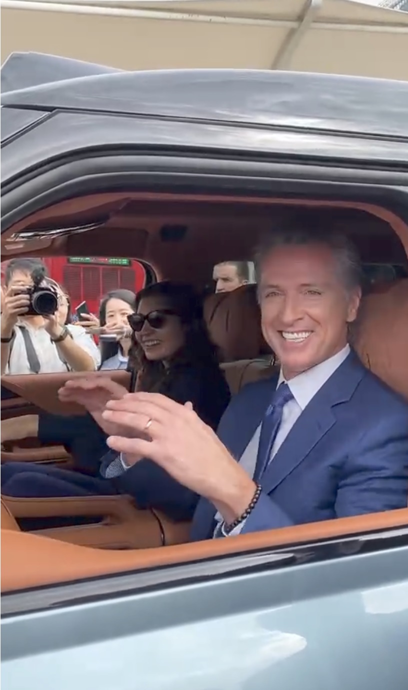 美国加利福尼亚州州长纽森(Gavin Newsom)2019年当选州长后首次访华,今日到访深圳,了解当地的电动巴士发展,并试搭比亚迪电动汽车,更声称自己也想买两辆能“原地掉头”的比亚迪电动车。