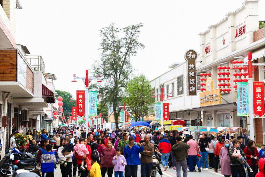 ▲龙潭旧墟风情街试营业首日,大批村民游客闻讯前来体验。