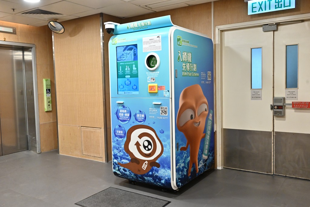 ▲绿杨坊配合港铁公司推动可持续发展的目标,积极落实各项环保节能减废措施,包括设置“逆向自动售货机”(入樽机)回收胶樽供循环再造。