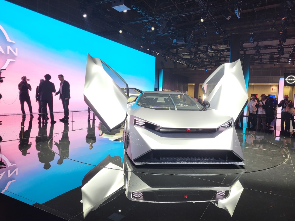 日产展台是三款电动概念车,全部以Hyper命名,最抢镜是鸥翼车门Hyper Force,不过厂方从没有讲过这是新世代战神GT-R,纯粹是大家想像。据知车子引用固态电池及e-4ORCE四马达四驱,输出可达1,000kW(1,360ps)。另外两款概念车Hyper Tourer MPV及Hyper Punk,可视为是Elgrand及Qashqai的未来预告。