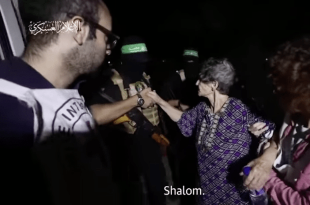 哈玛斯23日晚发表声明称,考虑到人道理由和人质健康状况不佳,决定释放两名女人质,利夫希茨是其中一人。从当晩的视频见到,利夫希茨获自由的一刻,她转个身来,主动与一名蒙面持枪的哈马斯武装分子握手道别,并用希伯来语说了“和平”两字,然后才被救护组织人员带走。