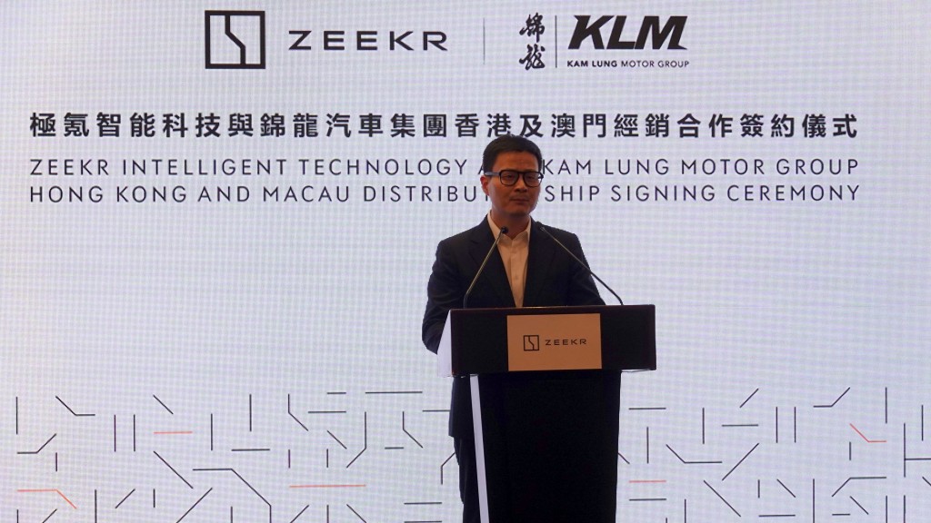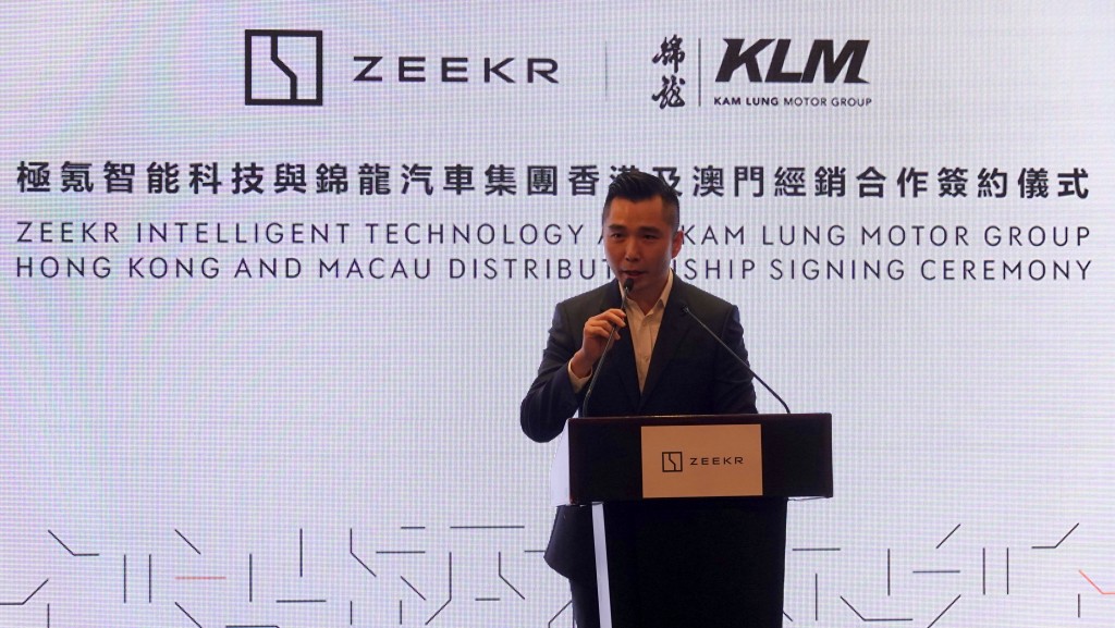 吉利集团旗下奢华电动车新品牌Zeekr“极氪”,昨天(10月26日)正式授权锦龙汽车集团为香港及澳门进口及经销商、车厂及代理今天下午在金钟香格里酒店举行合作签约仪式。