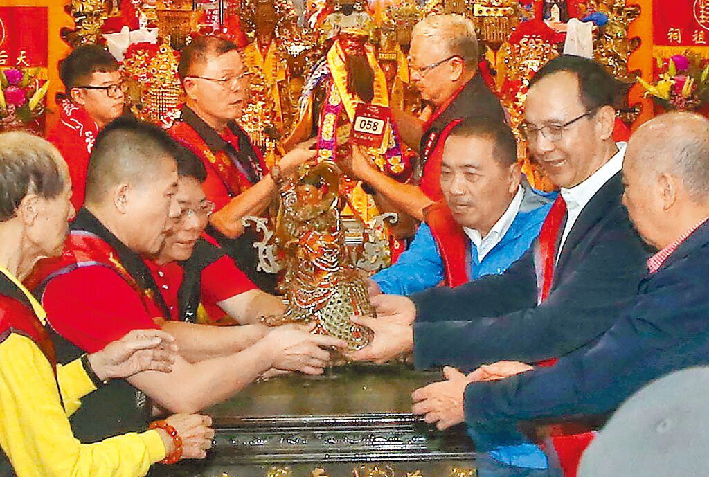 ▲蓝白整合政党协商时间与日期,最快今天将公布。图为国民党2024参选人侯友宜和国民党主席朱立伦28日出席“2023北台湾妈祖文化节”祈福活动。