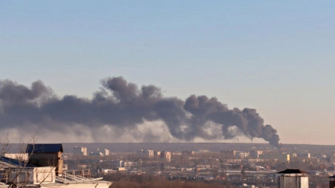 ▲俄库尔斯克地区去年12月遭乌无人机袭击后升起浓烟。美联社