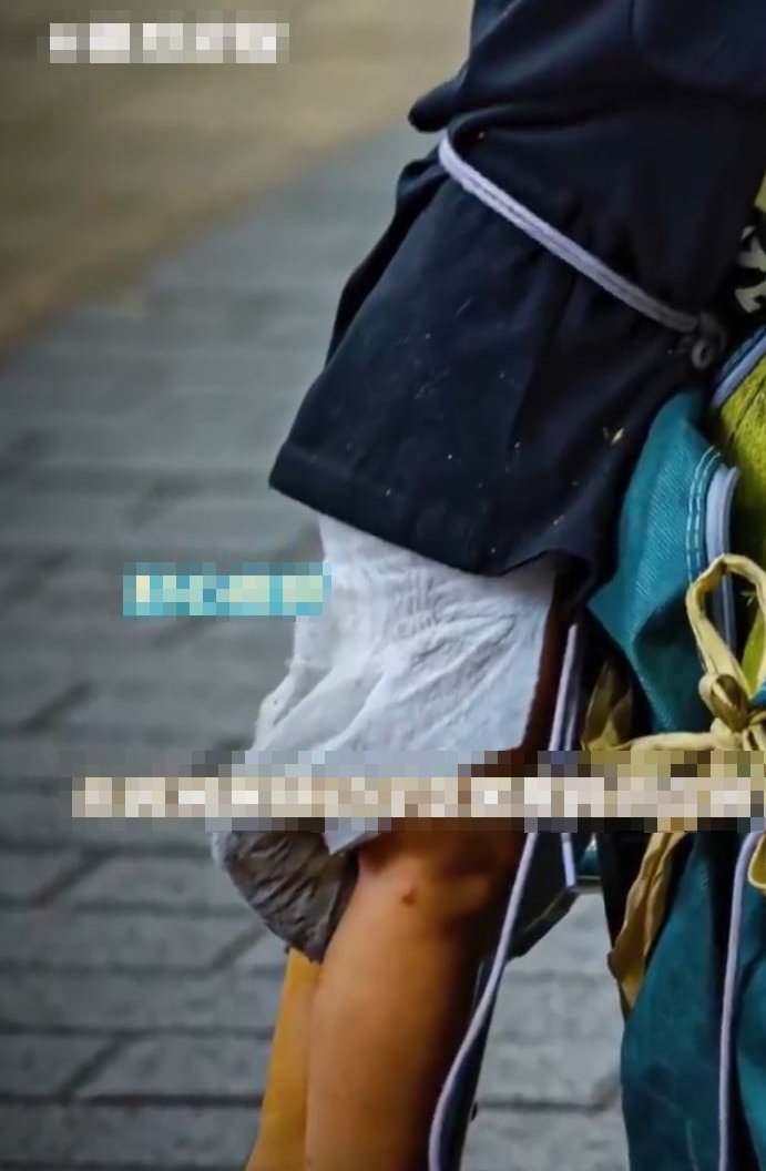 ▲“尿不湿小孩”在深圳街头行乞惹关注。