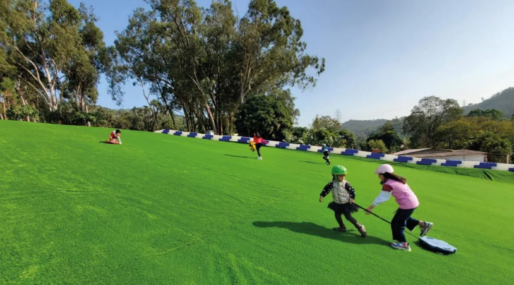 大棠有机生态园又名“大棠荔枝山庄”,园区占地大约280万呎,除了有基本游乐设施,更有齐攀爬设施、骑马场、有机果园、动物园、滑草场等,绝对是亲子好去处!这里可以喂羊仔,也可以到鱼塘喂锦鲤,这里亦有较少见的孔雀、黑天鹅、鸵鸟与鸸鹋;付费游戏选择亦多样化,有特式单车、充气弹床游戏,而巨型滑草场供3至12岁小朋友参与,不同的位置设有不同斜度及深度,为了令小朋友玩得更安全,于人造草下铺上软垫,亦可租借头盔,那就玩得更安心。