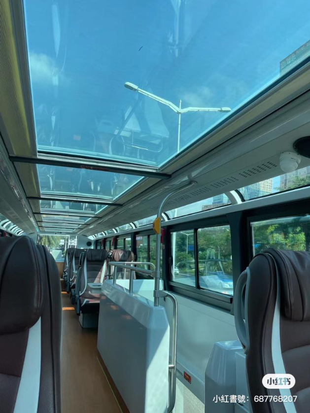 ▲巴士上层采用360度全景天窗设计,视觉开扬广阔。