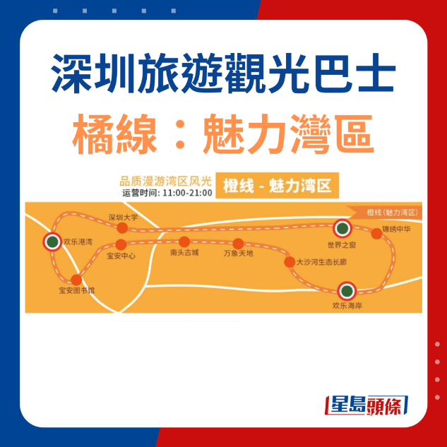 深圳都搭到红色双层巴士!说的就是深圳巴士集团推出的旅游观光巴士,目前有6条不同主题的城市观光路线,包括人文历史(起终点:莲花山总站)、科技生态(起终点:世界之窗)、魅力湾区(起终点:世界之窗)、生态人文(起终点:甘坑古镇)、城市夜景(起终点:欢乐海岸)。单日票或优惠票有效期为24小时,6条路线可以无限次上下车及换乘,安排行程更方便!
