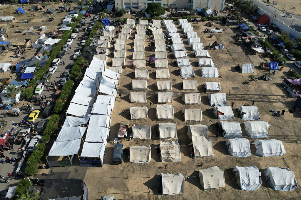 ▲联合国在加沙南部为巴勒斯坦难民设立的临时帐篷营。美联社