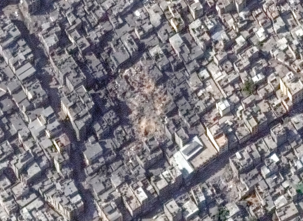 ▲卫星图像显示难民营遭空袭爆炸后的景象。路透社