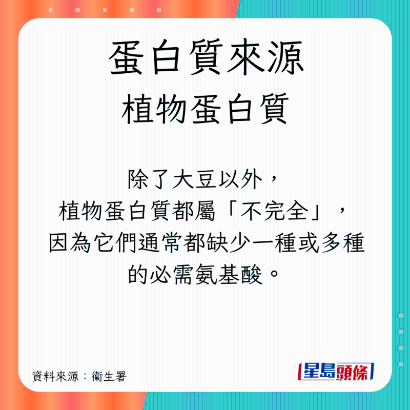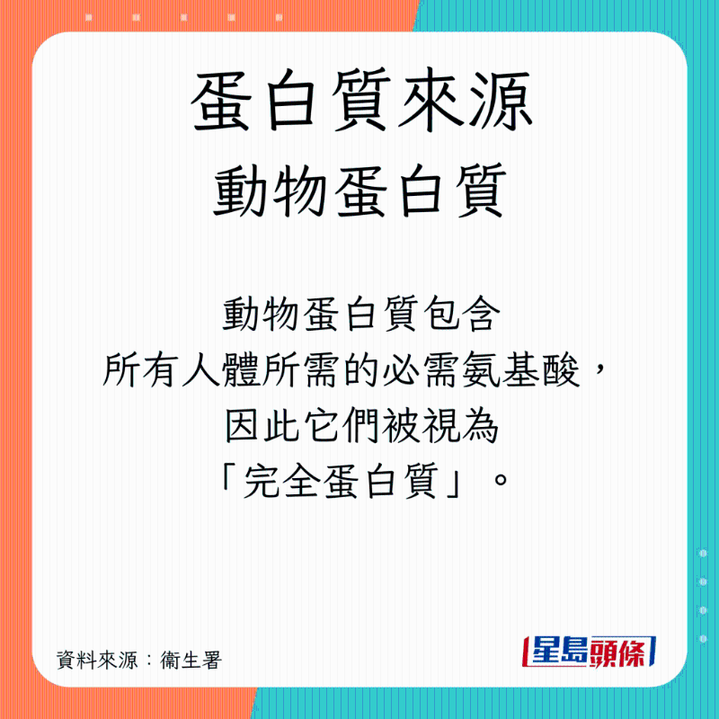 根据卫生署资料,蛋白质分为动物及植物2大来源: