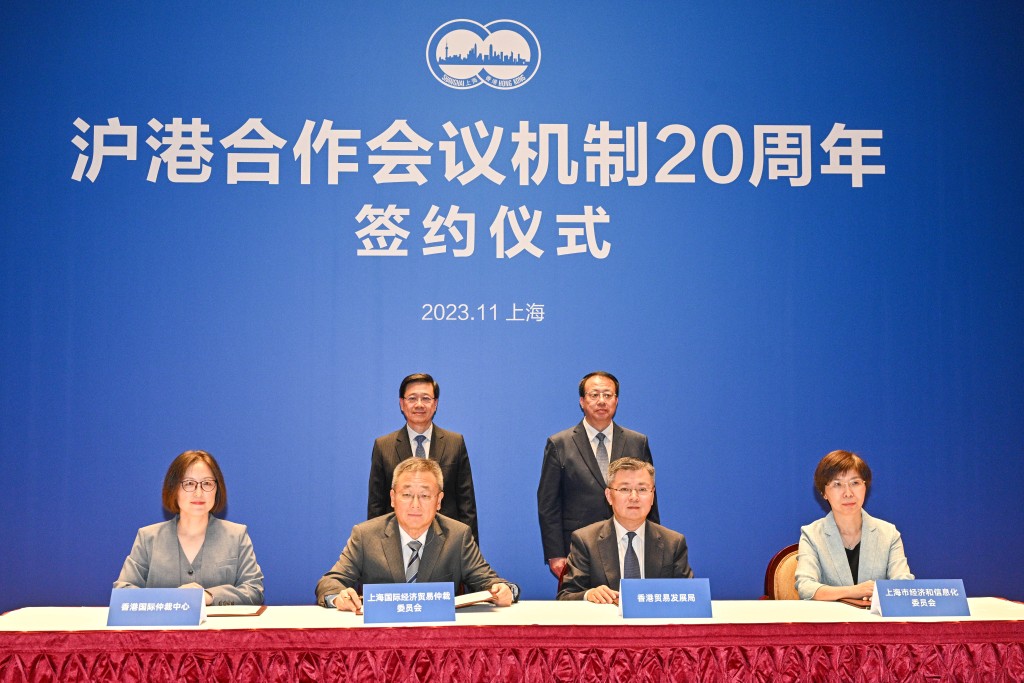 到下午,李家超与上海市委书记陈吉宁及上海市市长龚正会面,双方共同见证两地政府部门和机构签署5份合作协议或备忘录,涵盖职业及高等教育合作、科研与人才培训、科研创新合作、产业合作和就国际仲裁开展合作等范畴。