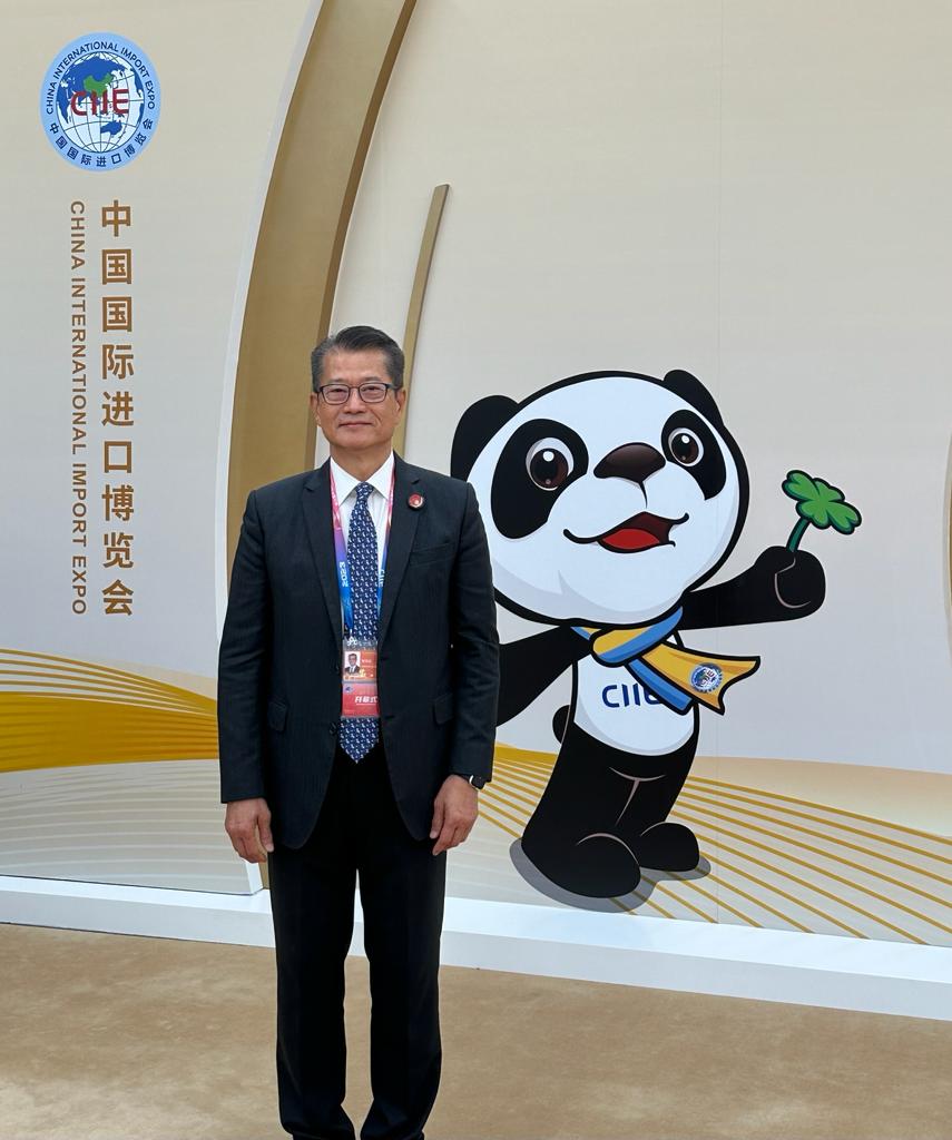 ▲陈茂波在上海出席第六届中国国际进口博览会。财政司司长网站图片