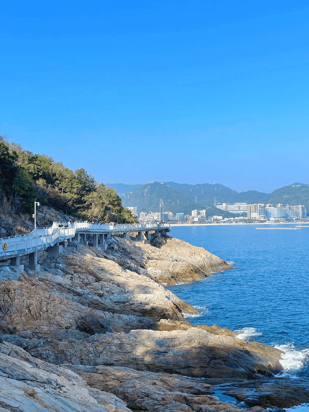 此栈道是盐田海滨栈道的一部分,可以由大梅沙海滨公园进入此栈道,总长约1公里。 沿途设有登山道、步道、景观平台、大栈桥、石拱桥等各类设施。 蜿蜒在山势险峻的岸边,往下望就是色彩斑驳的山岩,水波汹涌,看海一流。
