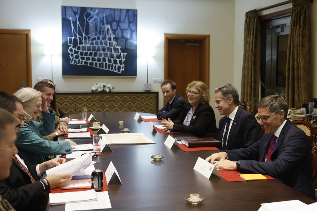布林肯会后表示,“我针对来自与伊朗结盟的武装分子进行攻击或威胁一事,非常明确地表达完全不可接受。我们会采取所有必要步骤保护我方人员。”他续指,“向任何可能试图利用加沙冲突威胁我们这里或该地区其他任何地方的人员的人,发出一个非常明确的信息“不要这样做”,这是非常重要的。”