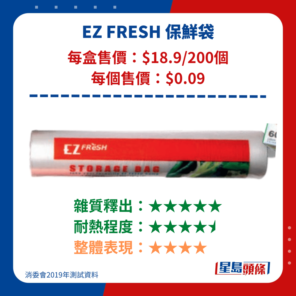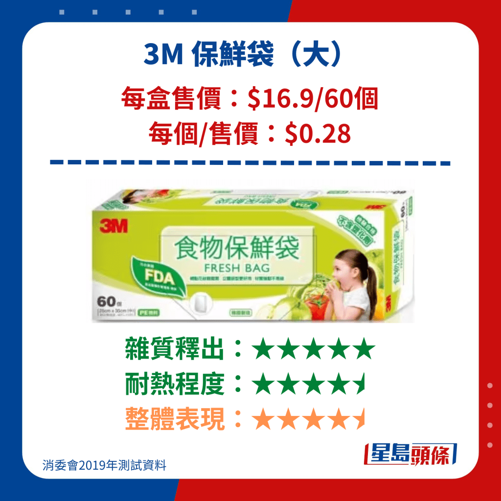 消委会早前以价格和品质作标准,测试了市面上20款密实袋、保鲜袋、普通保鲜膜及微波炉保鲜膜,结果显示全部符合食品安全标准,有14款在测试中获得4.5或以上的高评分,其中密保诺牌密实袋更获得满分的评级。不过,有品牌的价格差距甚大,同类型的产品相差超过两倍价钱。
