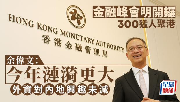 金管局第二年举办的国际金融领袖投资峰会将于明日(7日)正式开锣。 总裁余伟文表示,今年峰会请来的国际金融机构最高领导层人数较去年翻倍至90多人,相信涟漪效应会更大,只要这班猛人重拾对香港市场的信任和信心,自然可吸引资金在港或经香港进入内地投资。 事实上,过去一年整体外资在港业务加多过减,目前外资对投资中国的兴趣亦未减,只是暂时稍为减持,并伺机增加内地资产配置。