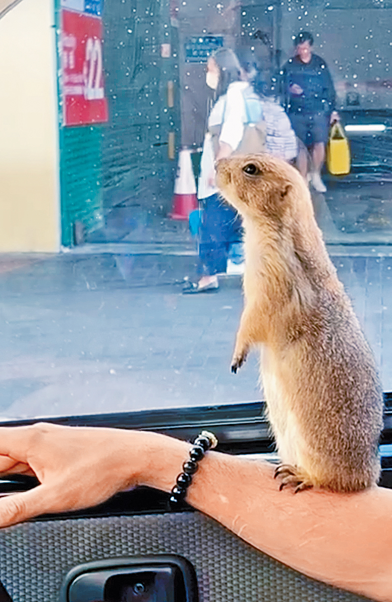 ▲黑尾土拨鼠是新兴另类宠物,有市民带同乘车外出。 网上图片